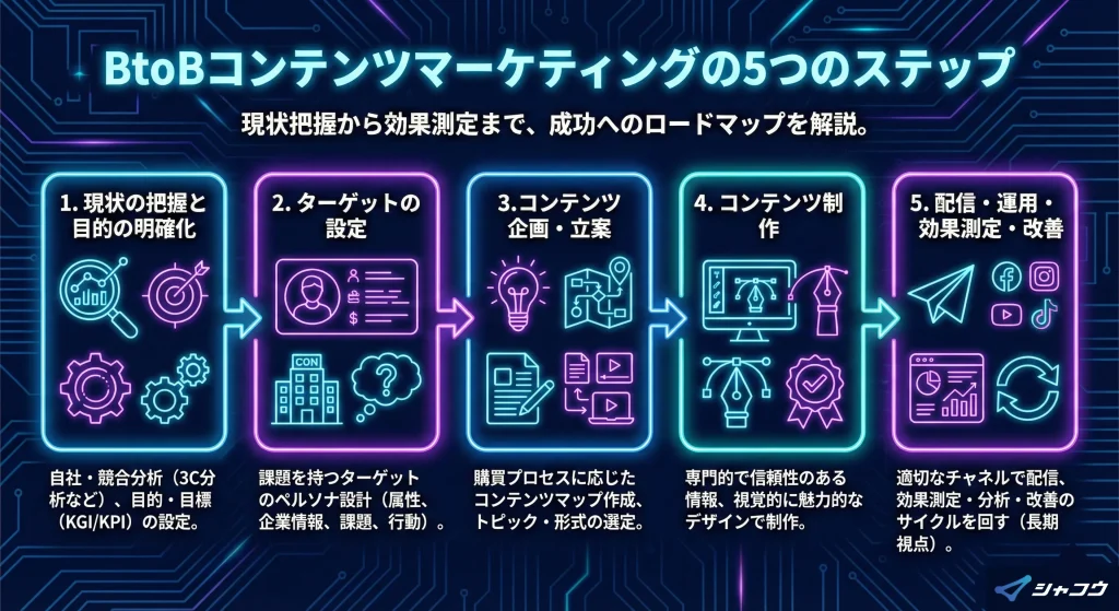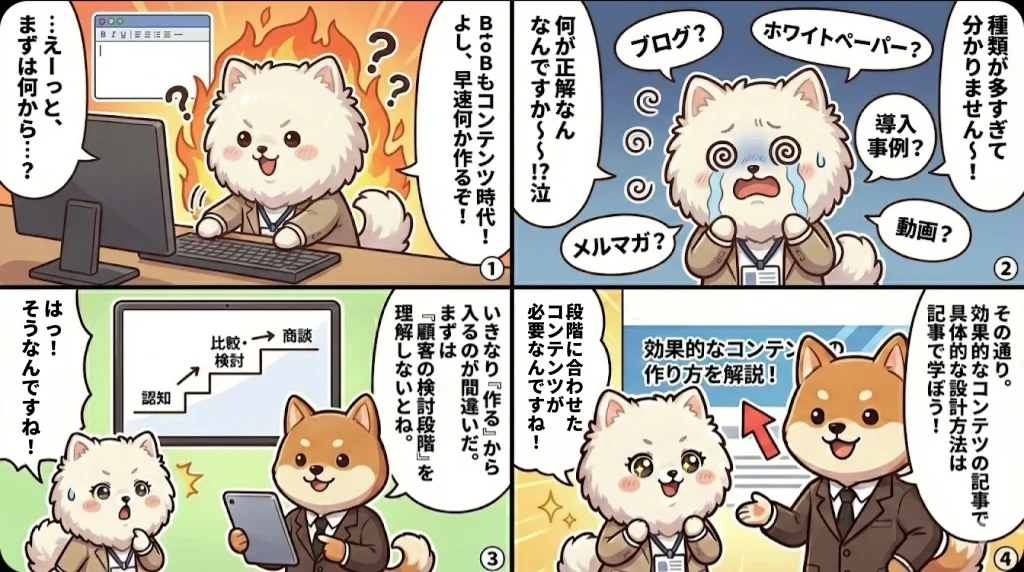 しかし、コンテンツマーケティングを成功させるには、BtoB特有の商談プロセスやターゲット層に合わせた適切な戦略を立てる必要があります。