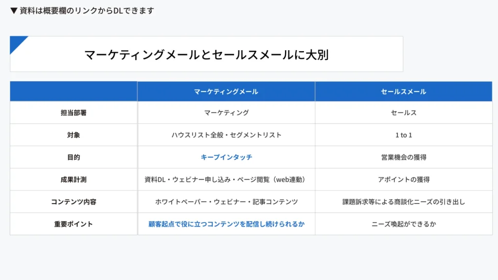 同じ「商談・受注」を目指す手法であっても、施策設計の思想は大きく異なります。