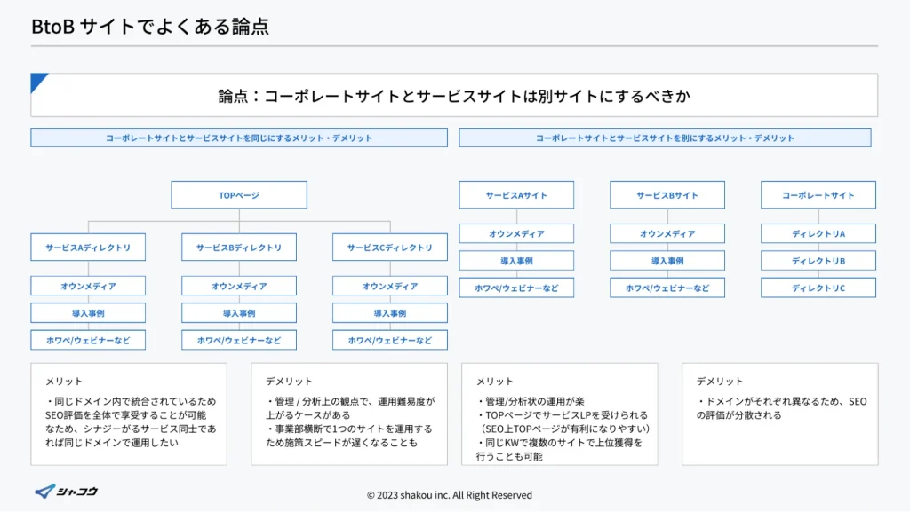 コーポレートサイトとサービスサイトは分けるべきか