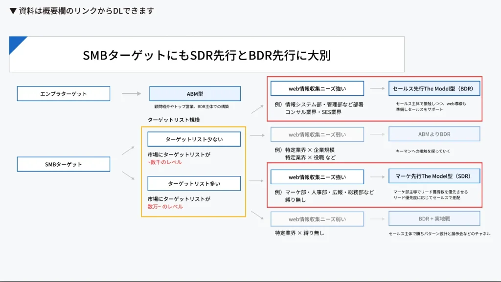- SMB中心 → The Modelをベースに、広く網をかけて効率的に商談化