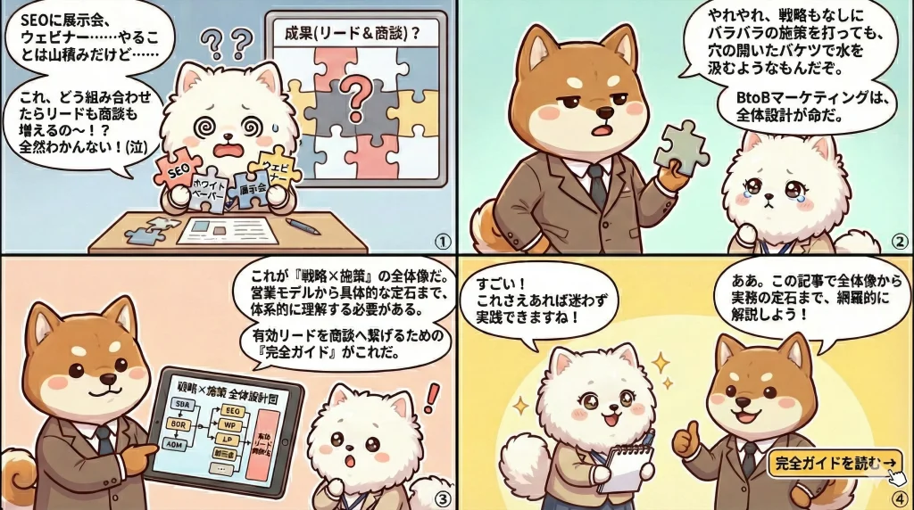 BtoBマーケティングは、施策の種類もツールも年々増えています。SEO、ホワイトペーパー、ウェビナー、広告、展示会——。取り組むべき選択肢は多い一方で、「施策は実行しているのに、商談や受注につながらない」と感じている企業は少なくありません。