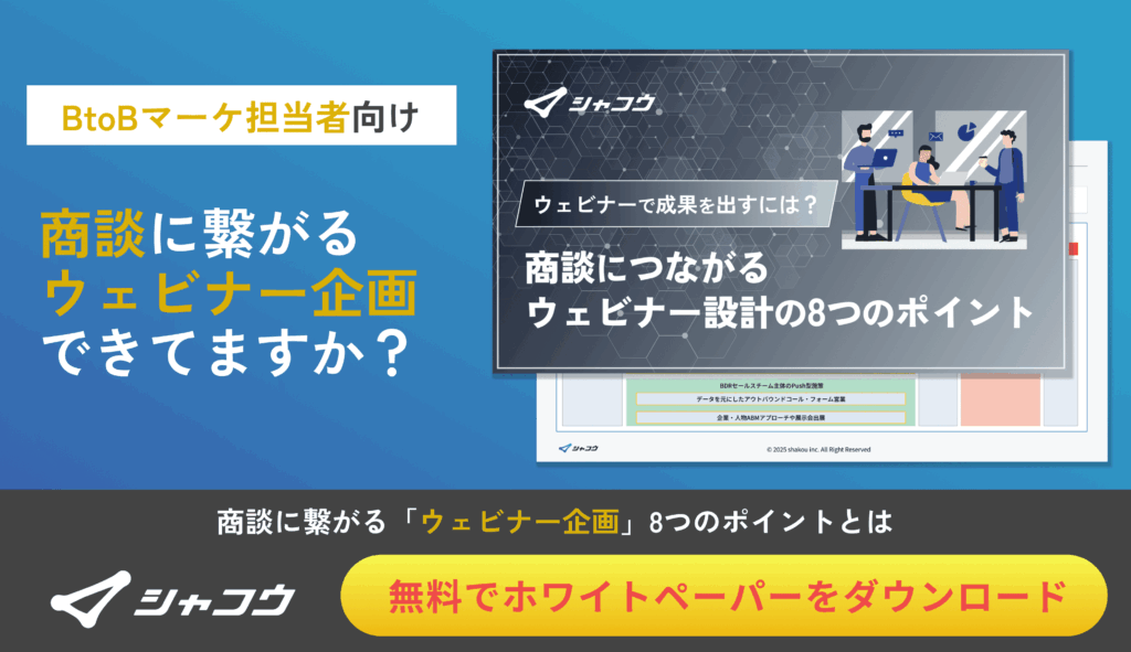 シャコウではBtoBマーケティングに関する情報をYouTubeで発信しています。初心者の方でもBtoBマーケティングを網羅的に理解できる内容になっていますので、ぜひ参考にご視聴ください。