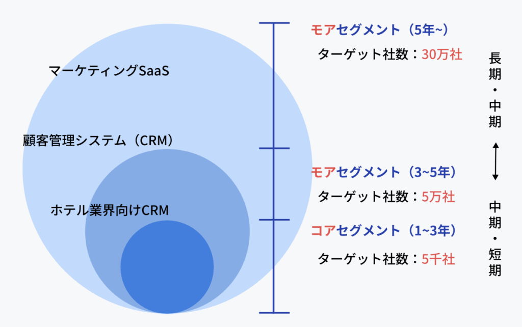 - Segmentation:市場を細かく分類(業種・業界・課題・規模など)