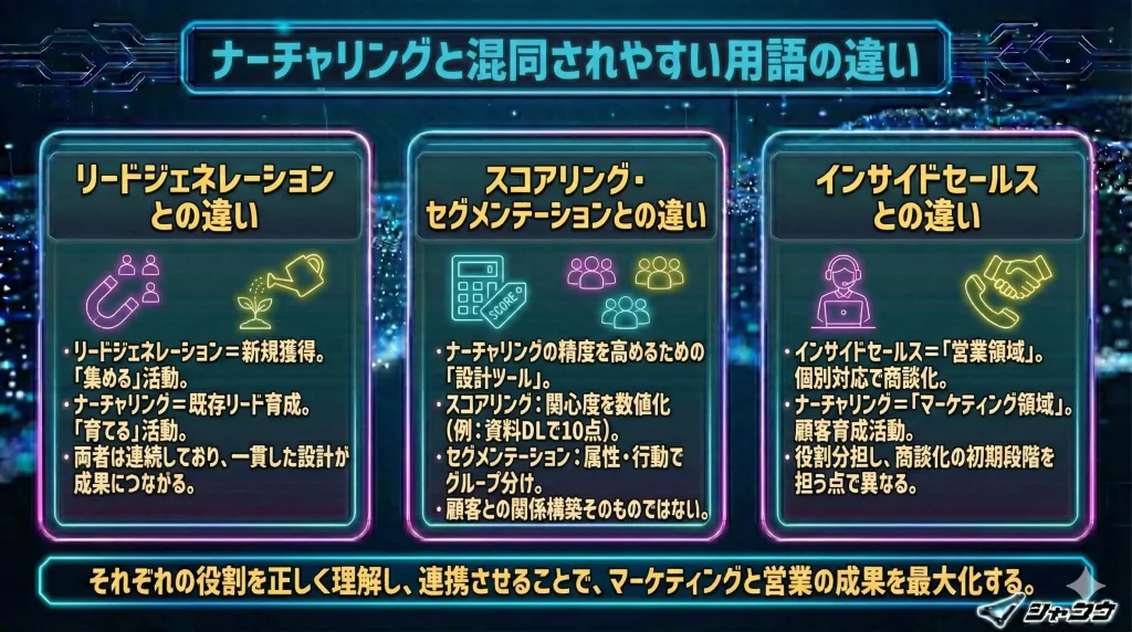 ナーチャリングと混同されやすい用語の違い