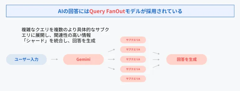 LLMOを理解するうえで鍵となるのが、Geminiで使用されているモデル「クエリファンアウト(Query Fan-out)」という生成AIの出力ロジックです。