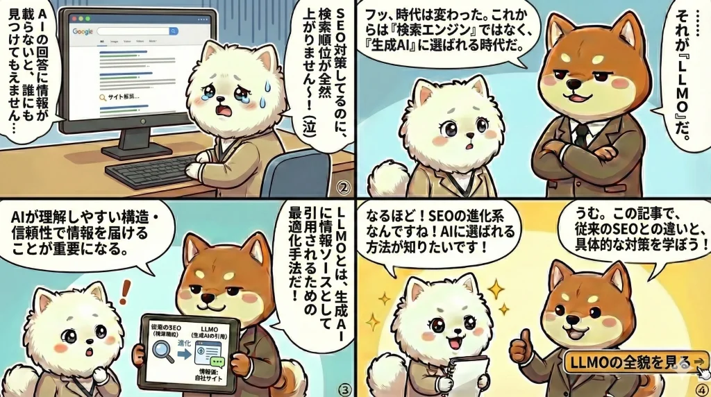 生成AIによる検索が主流になってきているからこそ、LLMOへの対策も必要なんだ!
